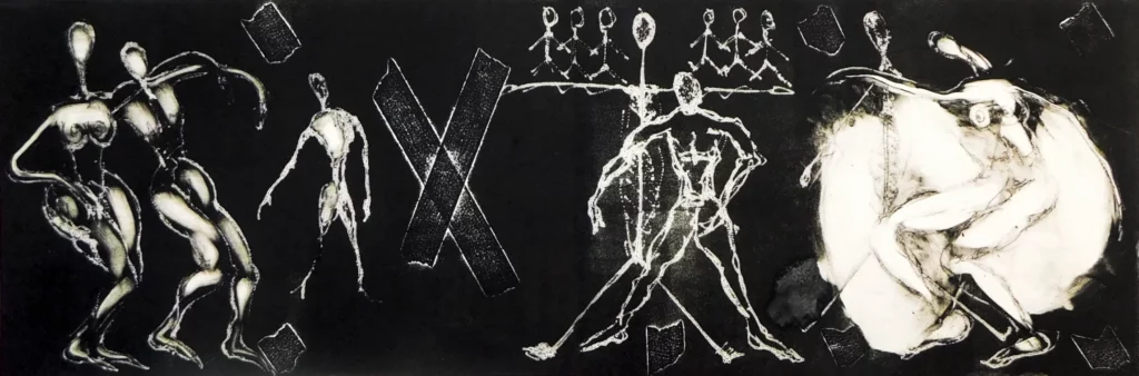 Nous sommes les filles de Jacques Badeau. En 2021, nous avons hérité de ses travaux et de ses recherches. Une œuvre papier principalement, qui court des années 70 aux années 2020, mais pas que… C’est aussi sur toile, plâtre, bois et métal que Jacques a choisi de travailler…
